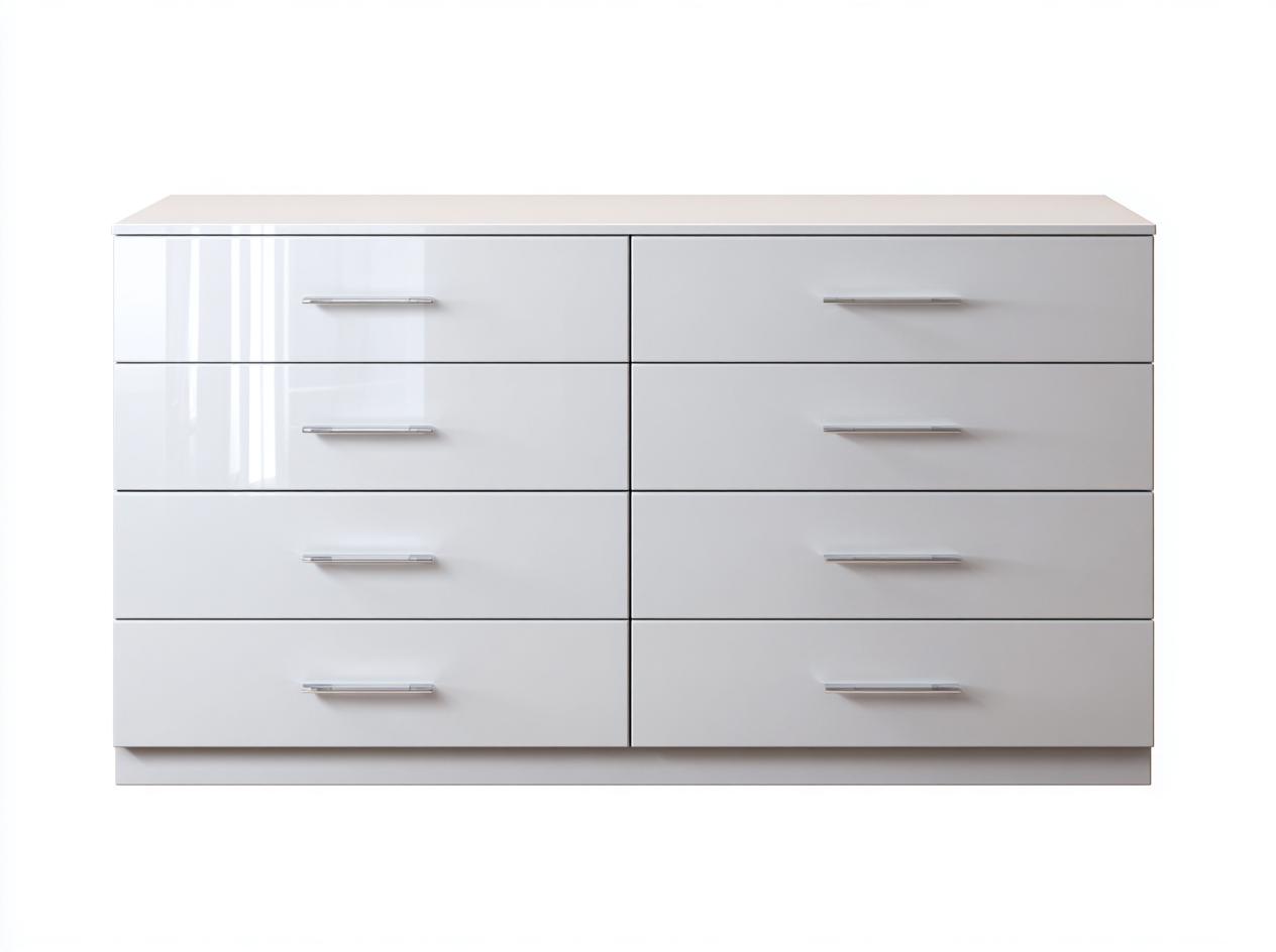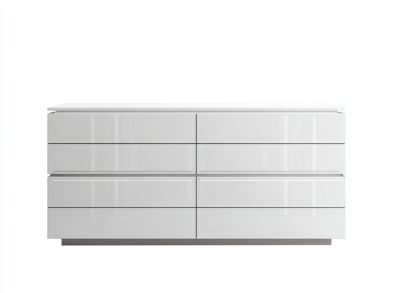 Cómoda de madera con cajones 150x45x80 cm blanco brillante - diseño moderno dormitorio