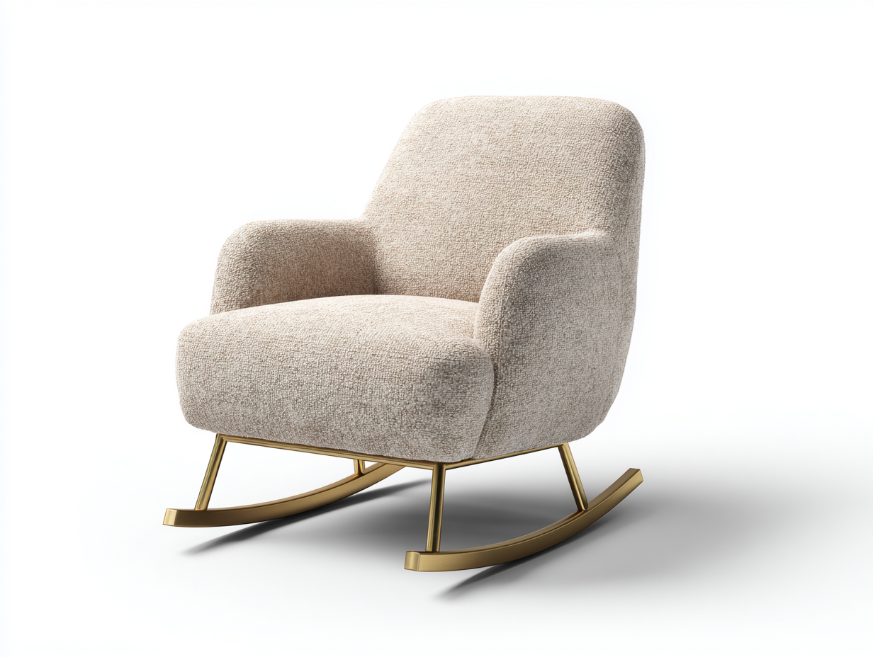 Mecedora tapizada tela boucle 75x90x95 cm beige - estructura metálica dorada diseño moderno salón