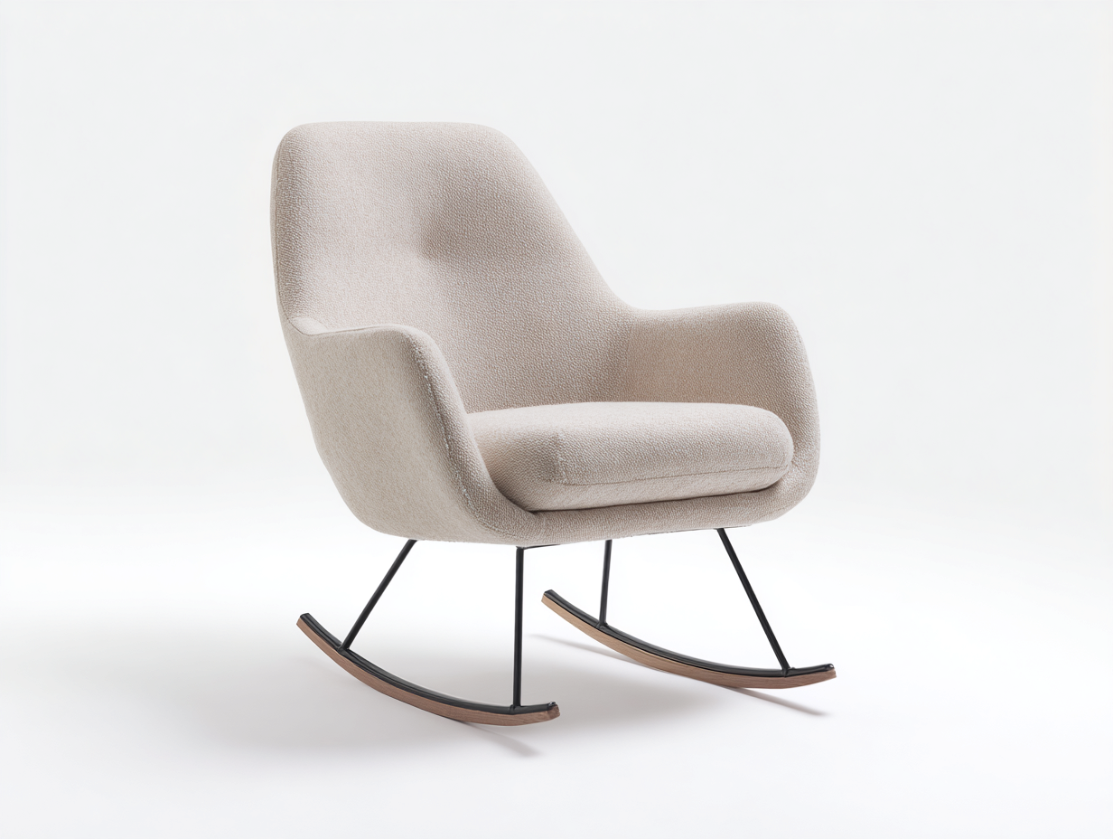 Mecedora de estilo moderno ideal para salón, dormitorio o rincón de lectura. Diseñada para ofrecer una experiencia de descanso cómoda con un balanceo suave y estable.